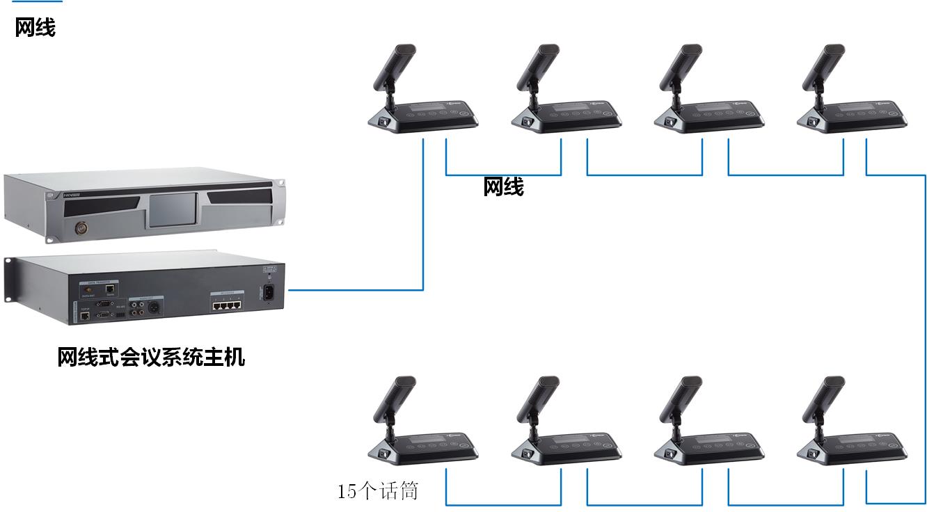 網(wǎng)線式數(shù)字差分會議系統(tǒng)連接方式