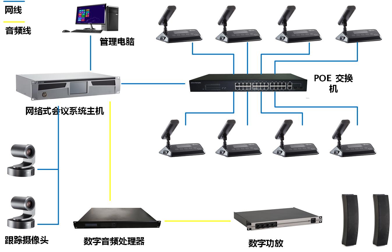 網(wǎng)絡(luò)POE數(shù)字會(huì)議系統(tǒng)連接圖