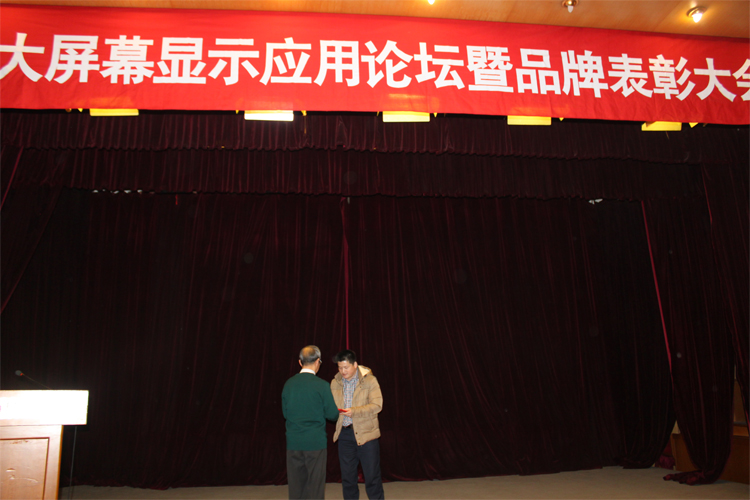 上面的大紅啊!下面才是本次的主角:頒獎開始了(大屏幕顯示行業(yè)北京頒獎現(xiàn)場,楊總和資深班頒獎師好端莊啊!)
